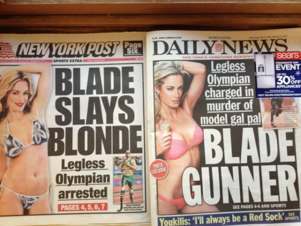Tweets with the hashtag #tellafeministthankyou and others about Oscar Pistorius were sent out as jokes to make light of violence against women. According to Twitter, feminists are “nags,” “bitches,” “hoes,” “sluts,” and “pussies.” Oscar Pistorius’s girlfriend “must have known he was armed because those are the only limbs he has.” I spent the next hour or so, reading misogynistic, sometimes violent language much like the covers of the New York tabloids the next day.
